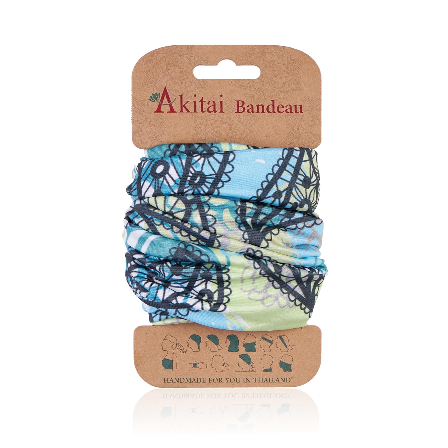 Akitai Headbands for Women – Boho Bandeau Headbands – Stylish Wide, Multipurpose, and Patterned Headbands – Acqua Leaves and Flowers Pattern