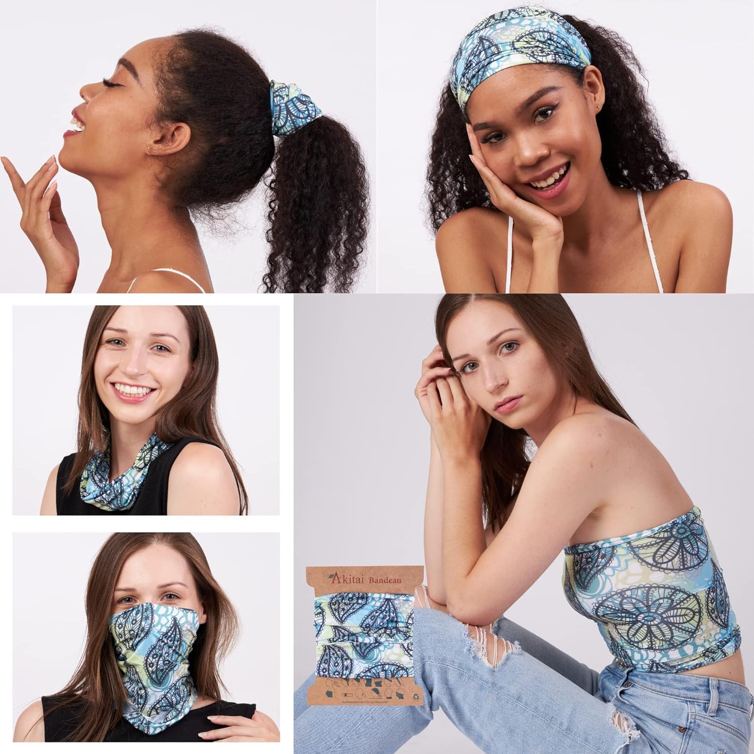 Akitai Headbands for Women - Boho Bandeau Headbands - Stylish Wide, Multipurpos, and Patterned...