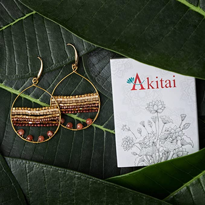 Akitai combines beads and stones in exquisite and multi-colored boho style earrings. Turquoise, blue, green, white and grey tones inspired by places you love. Our jewelry evokes warmth and radiance, filling you with compliments whatever the occasion. Birthday, mother’s day, Christmas, Valentine’s day, friendship or business, an ideal bauble bar accessory collection. All our jewelry is lead-free and nickel-free, light weight and maintenance free. Easy to wear, fashionable and giftable. Each piece comes in a lovely gift bag as our treat to your loved ones and yourself.