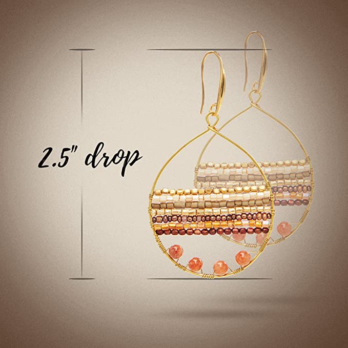 Boho Teardrop Earrings Santa Fe Brown Gold Hoop – Bohemian Jewelry for Women by Akitai (Brown)