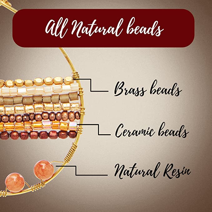 Bring the Coachella babe in you and rock every outfit with these gorgeous turquoise stones blended with red, peach, gold, and dandelion beads. Each hoop weighs only 3 grams (2×1.5 inches) so lightweight that it’ll just tangle in your hair perfectly!
