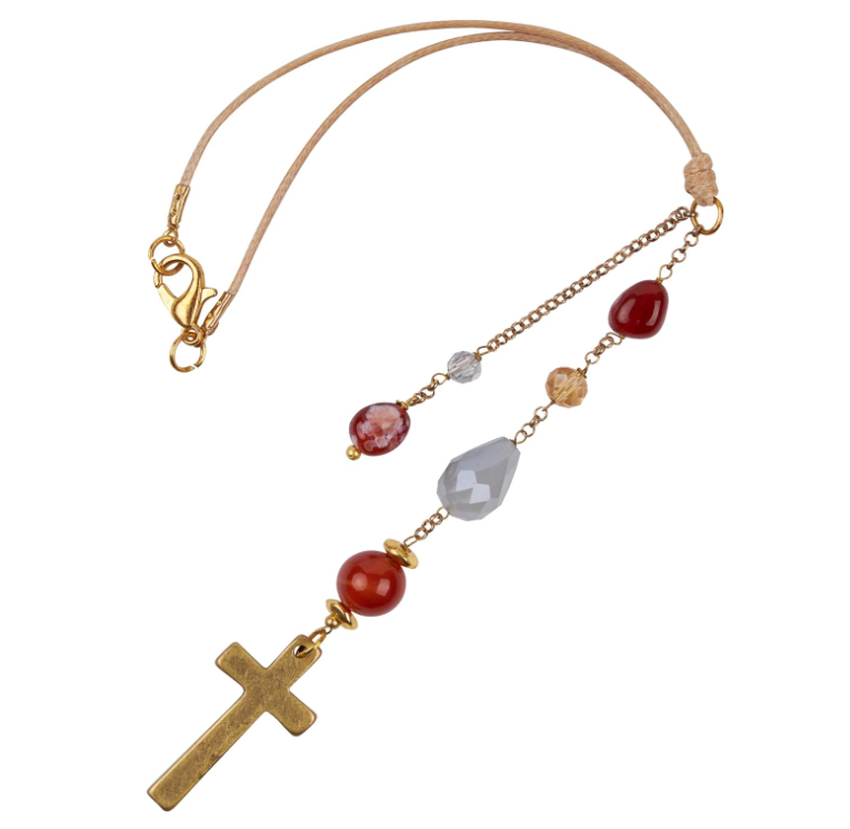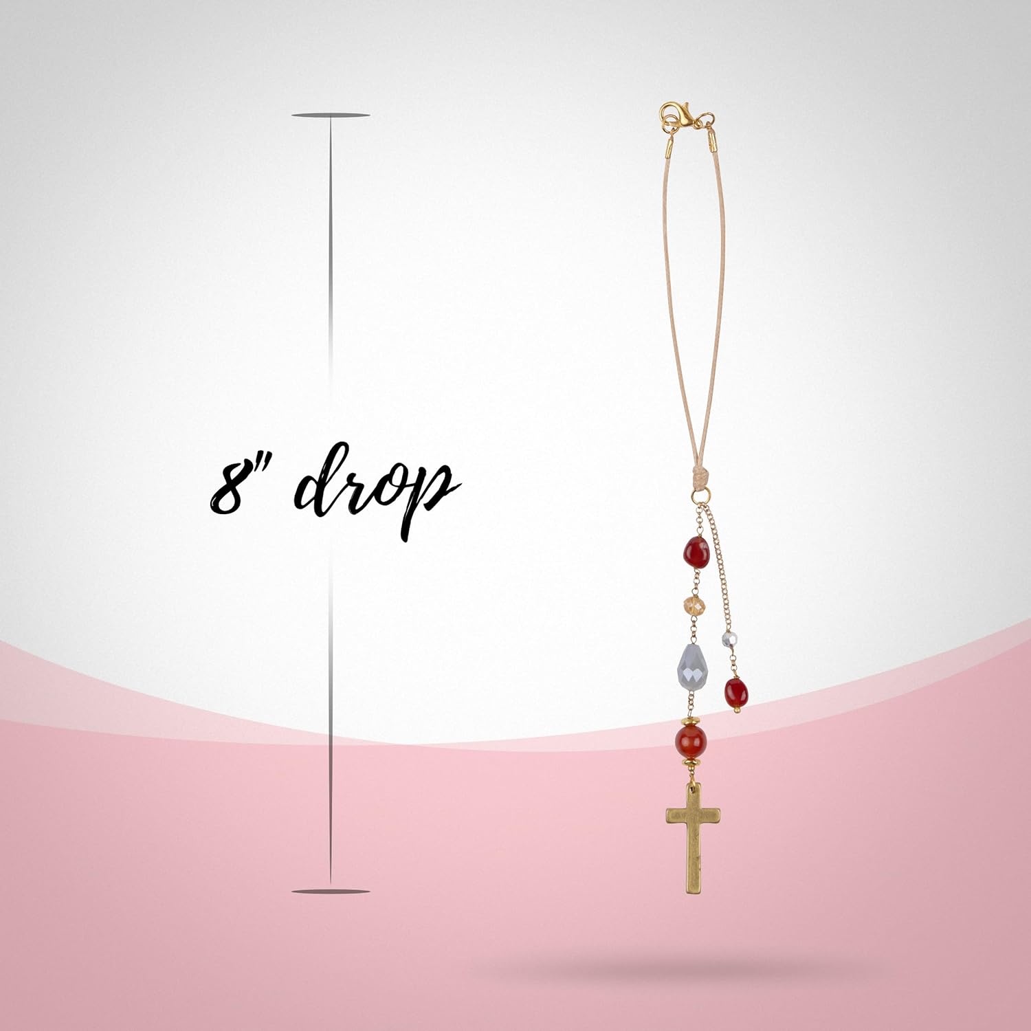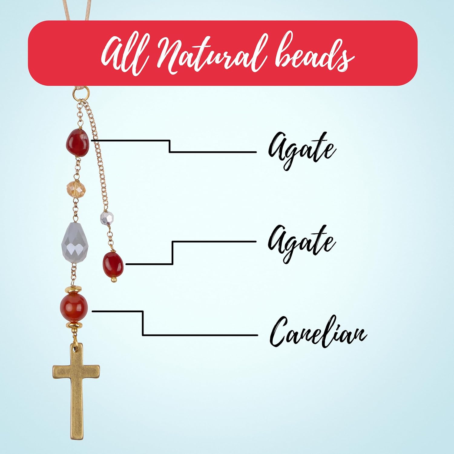Akitai Elegant Cross for Car Mirror – Sun Catcher Rearview Mirror Charm, Transforms Sunlight and Diffuses Colors and Energy Throughout The Car with Red Crystals
