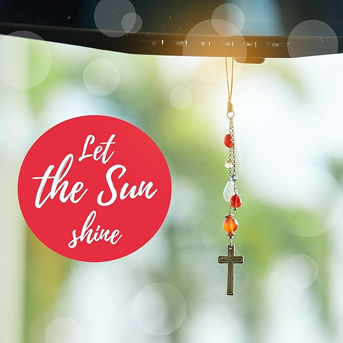 Akitai Elegant Cross for Car Mirror - Sun Catcher Rearview Mirror Charm, Transforms Sunlight and...