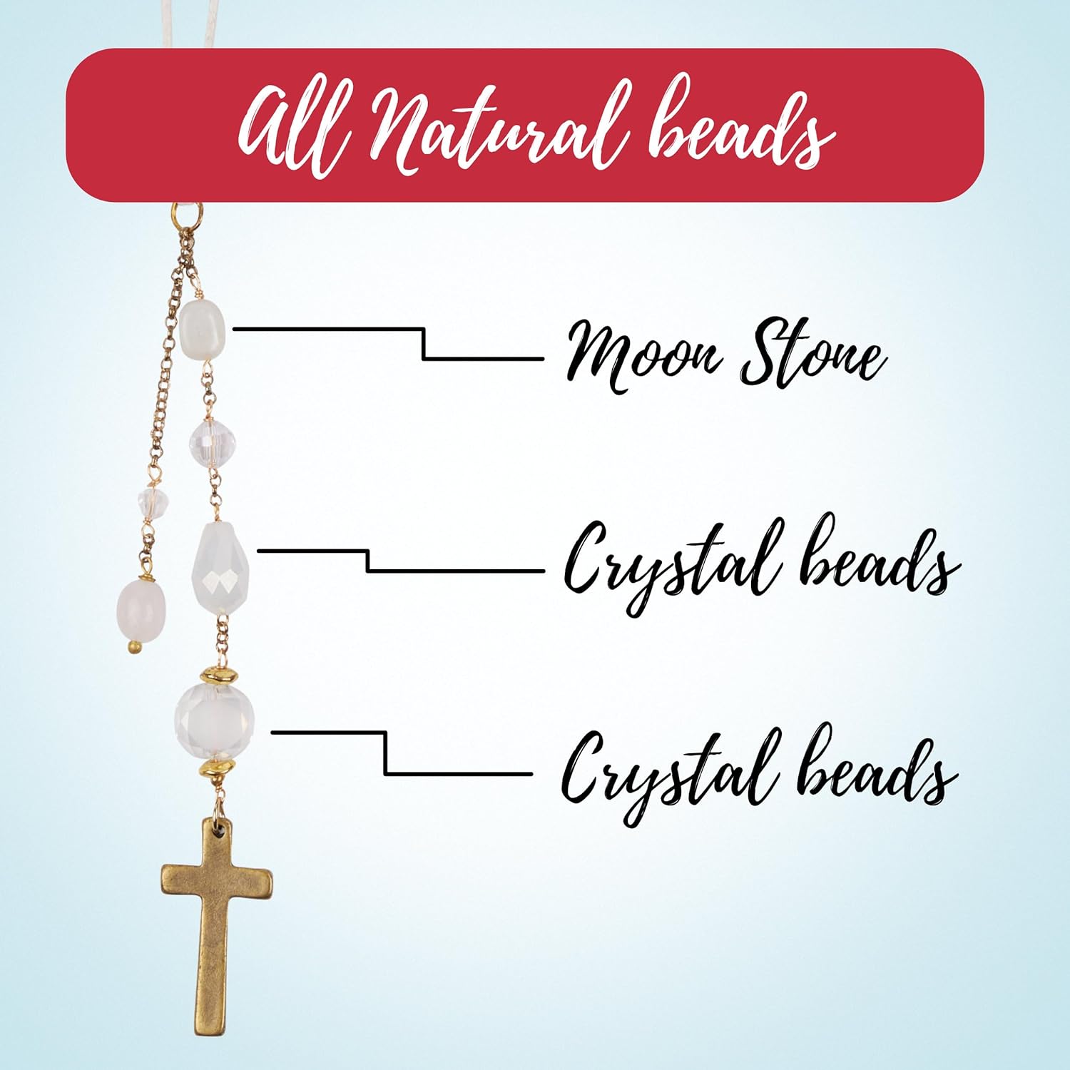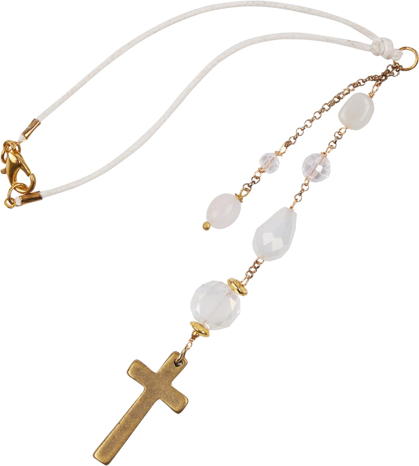 Akitai Elegant Cross for Car Mirror – Sun Catcher Rearview Mirror Charm, Transforms Sunlight and Diffuses Colors and Energy Throughout The Car with White Crystals